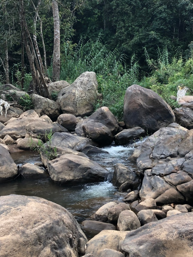 Over the past eight weeks we’ve gradually made the transition inland. From waves crashing onto the rock barrier thirty meters from our balcony and dolphins playing twenty meters beyond that, to the gurgling stream just outside our backyard tropical mountain surroundings. We were somewhat prepared by the serenity of Kerala’s backwaters, running alongside the noisy towns of Alleppey, Ernakulum and Fort Kochi, as well as the steadily deteriorating road between Kochi and Pallivasal near Munnar but nothing can really prepare you for the quiet here.