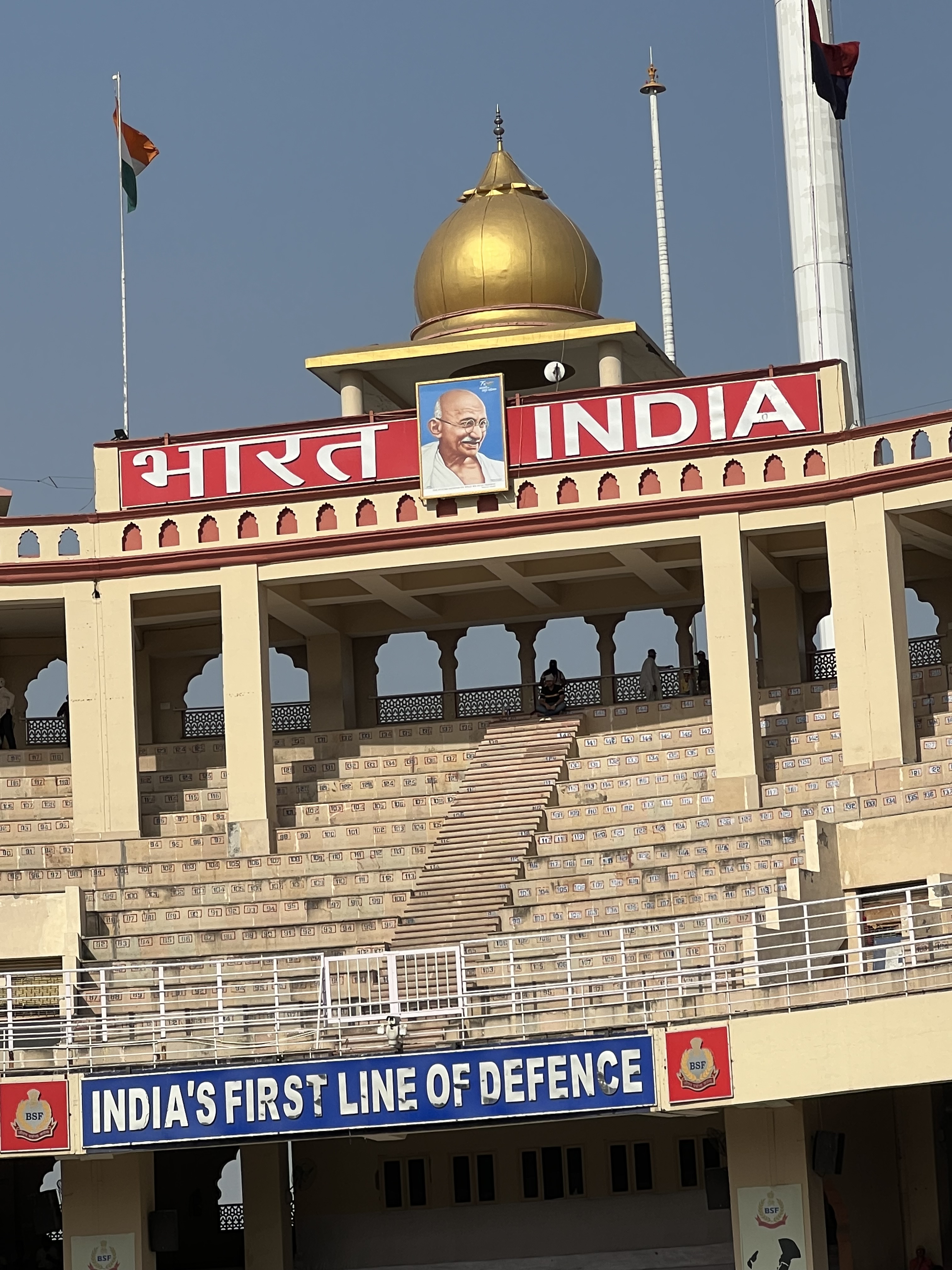 We’ve been to flag ceremonies in other countries; Thailand and the presidential palace in Lima, Peru, come to mind. Mostly a big yawn. But since there’s not a lot to do in the hot, dirty, crumbling city of Amritsar where we came to volunteer at The Golden Temple, we decided to go to the nearby Pakistani border to see the ceremony.