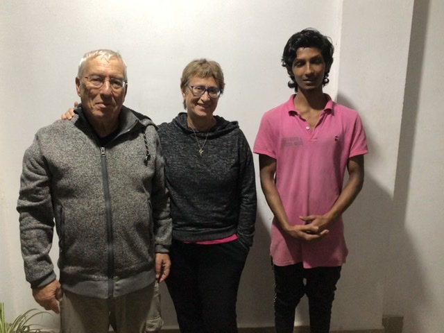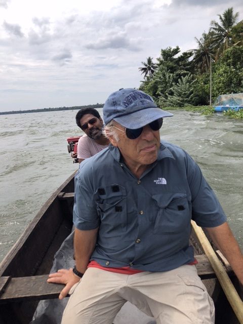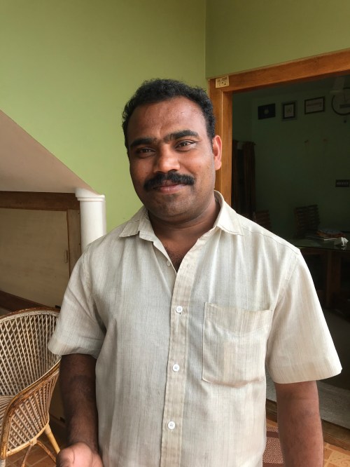 Antony (no ‘h’ in the many Antonys in Kerala, even St. Antony, and if you see an ‘h’, it’s not pronounced. There is no ‘th’ diphthong there.) was born in a very small fishing village in Kerala. Son of a fisherman, Antony loves nothing more than being out on the water in a small boat, meeting with childhood friends, hearing the waves lap the shore or crash on the rock barrier near his home. He chose a different life, though. Antony went to the military academy and spent 24 years in the military, retiring from his last position as Colonel, in charge of the anti-terrorist unit in northern India. He’s a hero in his hometown, and elsewhere. He went on to establish three businesses in the area surrounding his fishing village, employing over 90 people. It keeps him busy and away from his fishing village and the sound of The Arabian Sea. He’s not particularly interested in money for himself. His wife, Teresa, manages their bank accounts, saving what’s needed for their two children’s university educations, and gives Antony a small monthly sum to fill his motorcycle with gas and buy coffee during the day. He established businesses because he recognizes that along with employment comes dignity for his friends and neighbors. He’s also one of fifteen men who meet monthly to play games, share stories, and put money into the kitty for anyone who might be in need. His home is open to people at every level of society and they are happy to join him there for a drink or just a visit. Antony decided long ago that at sixty he’ll retire, he’s 49 now, and give himself the gift of The Arabian Sea’s whisper in his ear every day. An eclectic man, he never ceased to catch our interest or raise thought-provoking questions for discussion – philosophical as well as ‘what if’s’. We felt honored to be invited to his nearby home for dinner with his wife and son (his daughter was away at preparatory exams). It’s clear how much his son admires him and what a loving father he is (he told us that his wife keeps the kids in line because he can’t tell them ‘no’). I’m sure he was a tough officer in the military – he’d have to be – but in civilian life he has mischief and the sparkle of laughter in his eyes and a huge heart filled with kindness.