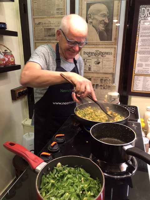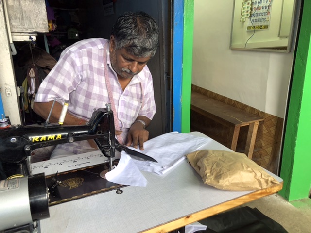 Neema taught me to cook South Indian dishes, including the masala dosa my partner loves so much. More importantly, she and her husband, Prasad, spoke to us for many pleasant hours about their India, their family, and their experience working with many tourists. A soft-spoken, gentle soul, Prasad actually worked for many years as the captain of a commercial line of ships. Neema spent her first five years of marriage (an arranged marriage, of course) traveling along with him, visiting ports all over the world, even after their daughter, Olivia, was born. It was a special privilege only the captain’s wife enjoyed. Once Olivia was a bit older, they settled down in Neema’s parents’ historical landmark home in Wypeen Island, just a short ferry ride away from Fort Kochi (Kochin). Neema’s parents live in the house as well, though we never caught sight of them. Prasad is well-read, andknowledgeable in many areas including history, Indian and world politics, world geography, ichthyology, a bit of botany, and many languages. As Neema taught me to cook, Prasad and my partner kept each other entertained. Prasad was the one to open up the, formerly unknown to us, history of Jews further north in Kerala. After cooking class, Neema put her feet up and we chatted about being mothers of independent, strong-minded young women, building a business which relies heavily on customer service, the trials & tribulations of developing and maintaining a social media presence, remembering to give back to the community, and, of course, where to shop for clothes and gifts close by for good prices and quality.