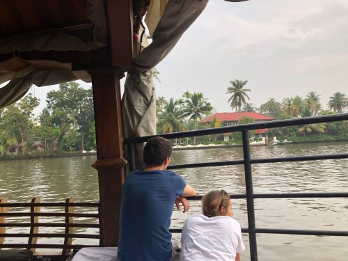 J.P., another host, perplexed that most days we just hung around the river behind the guesthouse or took the 8 km walk across the bridge, circling back through the small village. He never stopped asking eagerly if we wanted a tuk-tuk to go into Munnar each morning (we went 3 times during our two weeks there). He loved that he and I share a daily yoga practice and smiled with a small bow each time I came back in, though his own daily practice was long over (he does a half hour at 5 a.m.). When we left he gave us a brightly colored red and gold something or other (??) and said we would always be family. He’s since sent Whatsapp messages asking how our trip’s going and then wishing us a happy 2020.